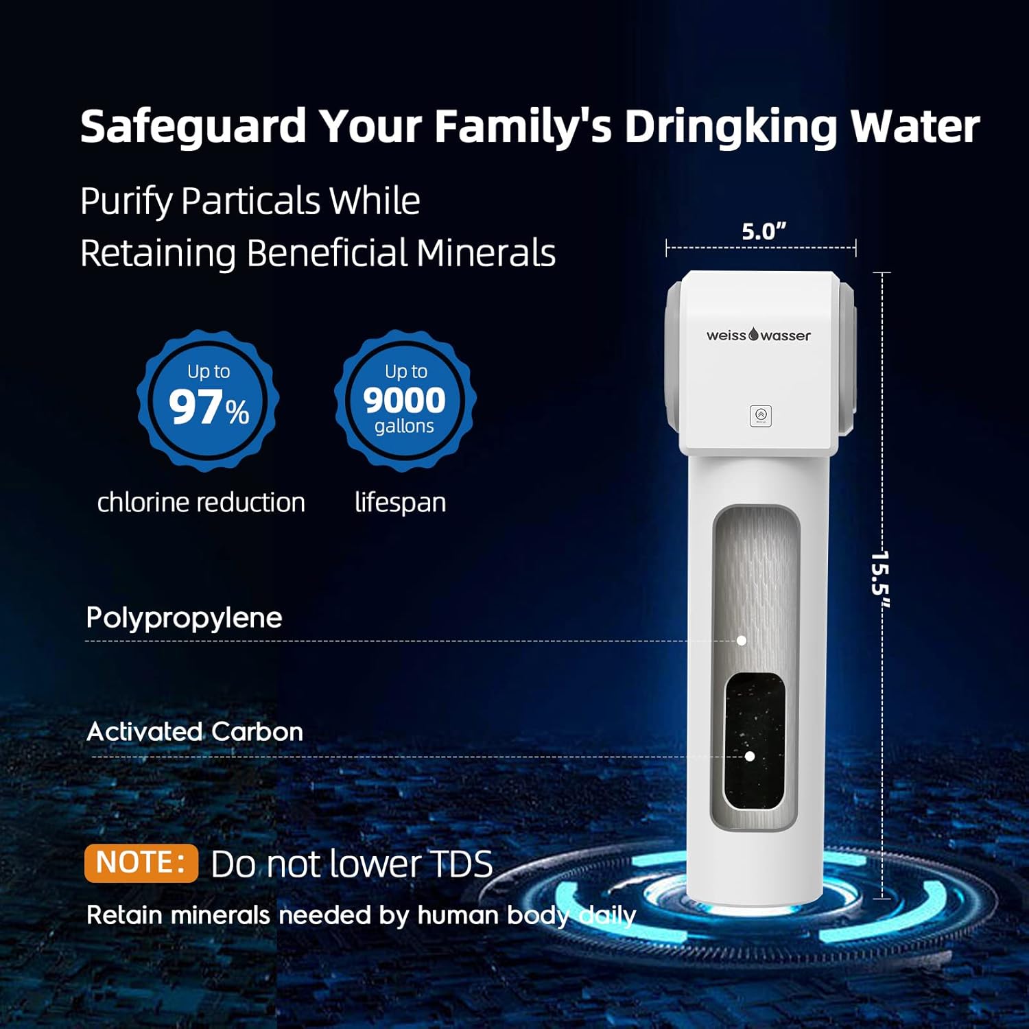[Efficient Filtration] The Weisswasser Sink Water Filter features multi-stage filtration with PP folded cotton and coconut shell carbon. The PP cotton has a filtration precision of 5 microns, effectively removing most harmful substances larger than 5 μm. The NSF/ANSI 42 certified activated carbon filter and 0.5 micron PP cotton significantly reduce sediment, rust, particles, chlorine, odors, and bad tastes, improving water taste and pH levels.